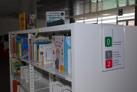 Inclui Bebeteca, para crianças até aos três anos e sala de leitura, para crianças até aos 13 anos e adultos educadores.