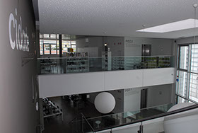 A zona de periódicos e informação geral localiza-se no átrio central ajardinado que comunica com o espaço verde exterior, condições propícias para zona de estar e leitura informal.